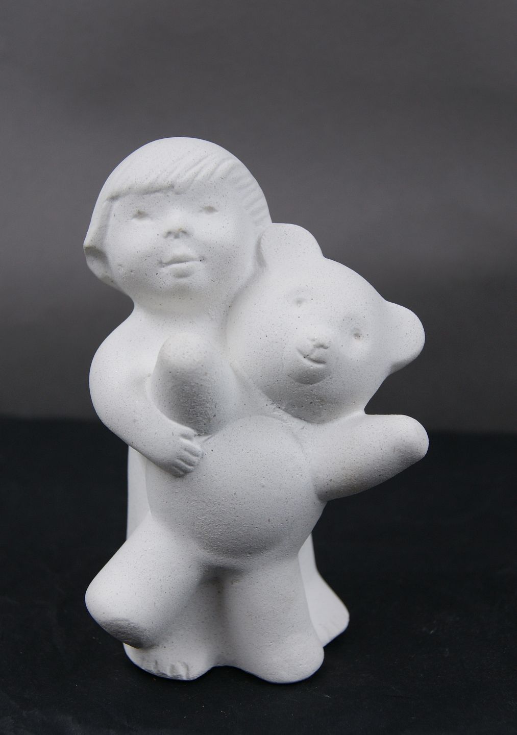 Marbell, Belgium. Child with teddy bear, Stone Art white figurine in very good condition. H 10cm Item number: ke-Marbell StoneArt barn+bamse