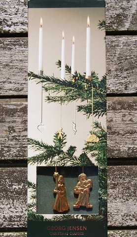 Georg Jensen Denmark Christmas decorations. Pair of candle holders in gilded brass, Star and Girl