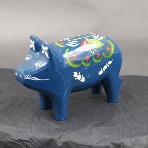 Dalecarlian pig of wood from Sweden with normal usage wear. Blue Dala pig L 13cms Stock: 1 Item number: v-Blå Dalargris L 13cm