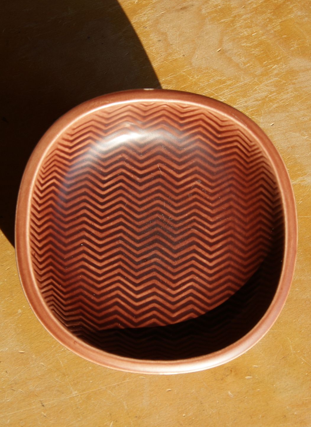 Well-maintained bowl No 2635 with stylized wave decoration in oxblood glaze.