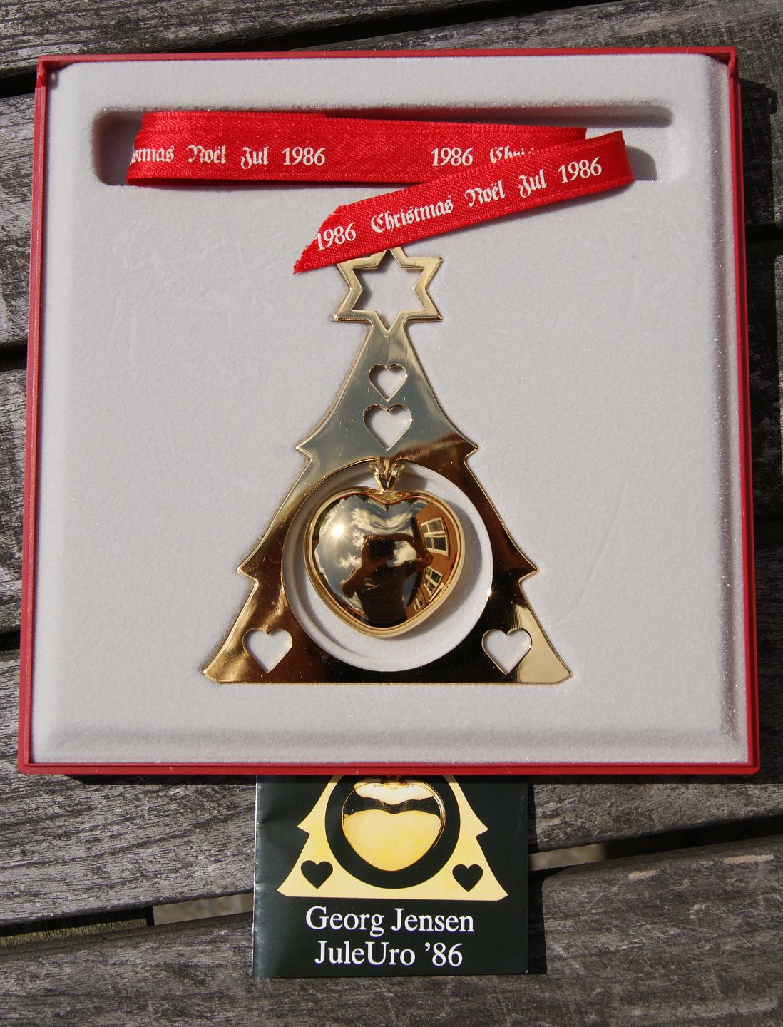 Christmas Ornament 1986 Christmas Heart of gilt brass by Georg Jensen, Denmark.
