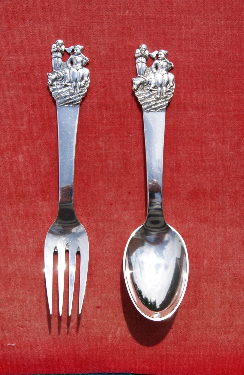 Den grimme Ælling barnebestik i sølv. Sæt barnegaffel og kniv