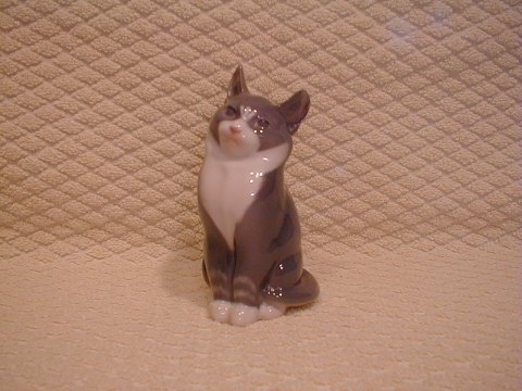 Royal Copenhagen figur nr. 1803 i 2.sort. Kongelig porcelænsfigurer Siddende kat, grå i pæn stand. H 13cm. Kunstner: A. Nielsen Emne nummer: f-Kgl.1803