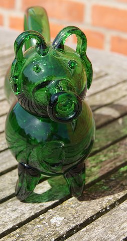 Svensk snapsehund med hank i mørkegrønt glas. L 22,5cm Emne nummer: g-Svensk snapsehund grønt glas