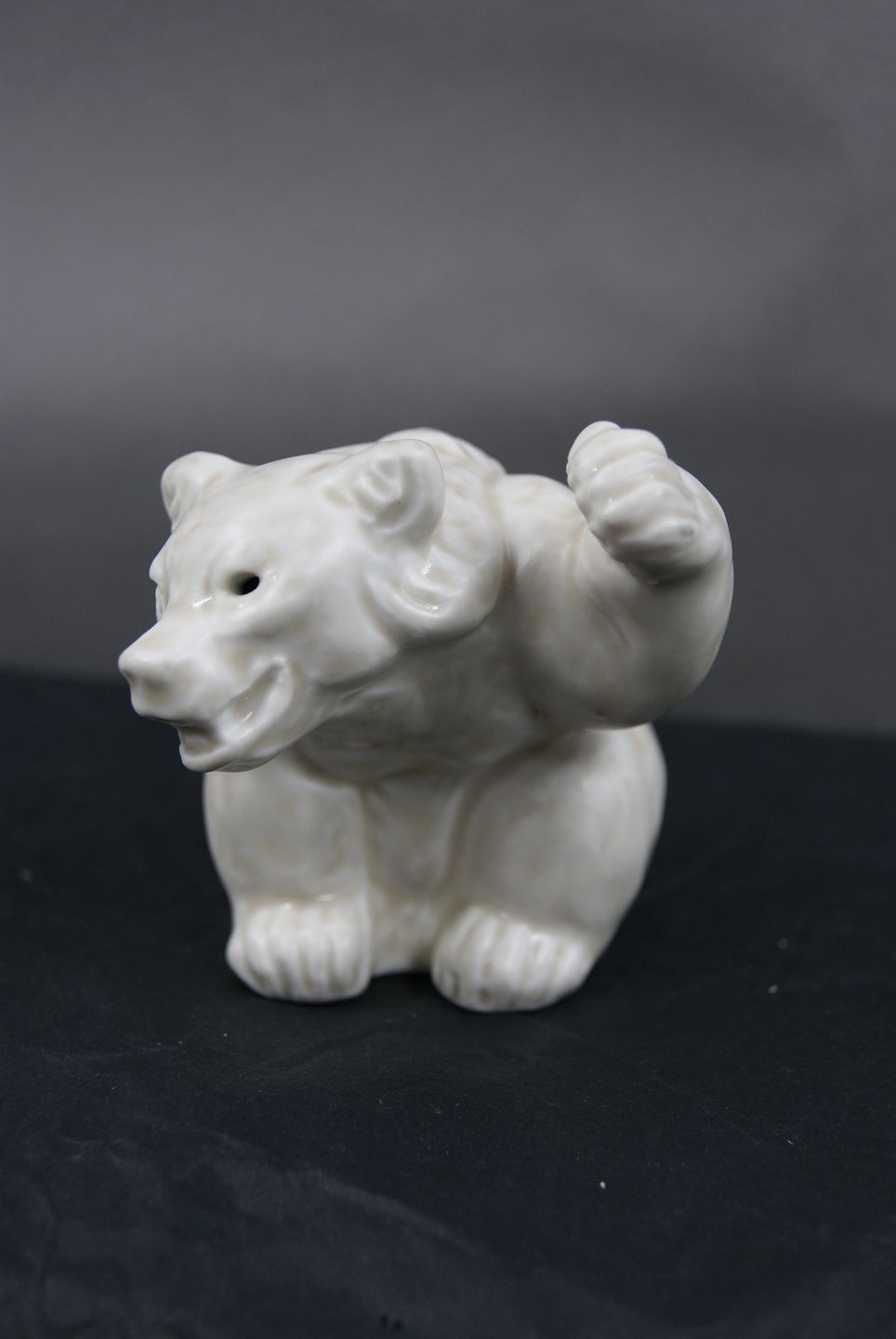 Kongelig hvid stentøjsfigur nr. 21433, Siddende bjørn med løftet venstre pote