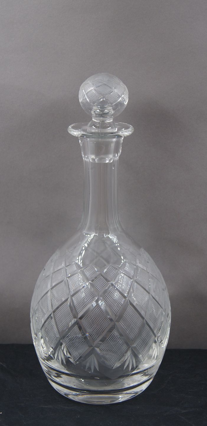 Vinkaraffel i klart glas med slibninger og original prop 24cm