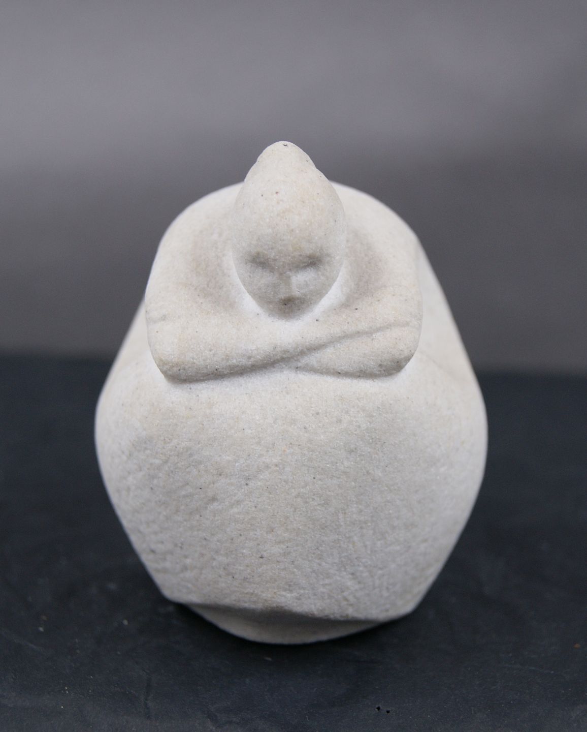 Marbell , Belgien. Drømmende pige Stone Art let sandfarvet figur i rigtig pæn stand. H 8cm Emne nummer: ke-Marbell StoneArt Drømmepige