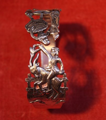Children's oval napkin ring with 2 motifs in a fine used condition and without inscription.