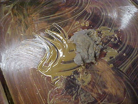 Ja, så beskidt kan et skab være! Afrensning af fedt, snavs og cigarrøg, hvorefter skabet er poleret op med ny lak.