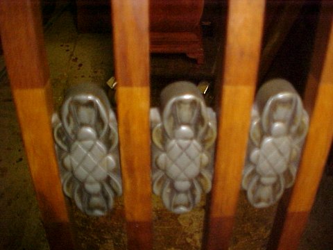Afrensning af gammel lak og fernis på et par meget fine Bindesbøll stole, ca. 1910. Tinornamenterne på stolene er udført af sølvsmeden Georg Jensen.
