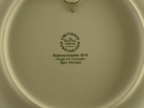 Weihnachsteller 1976, Bjørn Wiinblad, Rosenthal, diameter 29 cm. I original æske. "Engel mit Trompete" Pris: 450 kr.