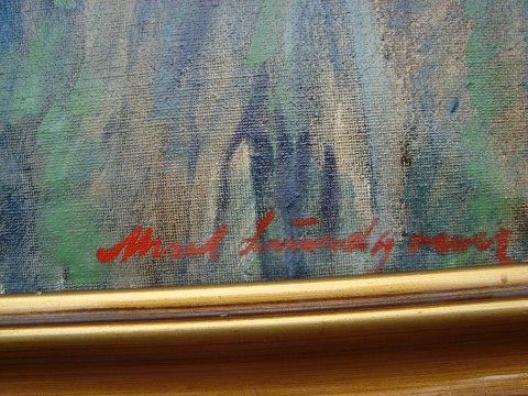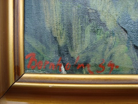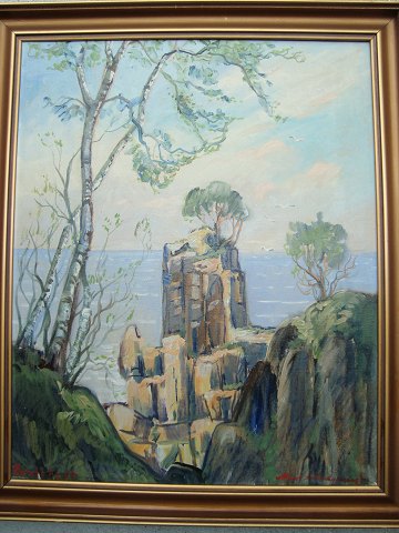 Maleri - Aksel Lundgreen 1939 - Klippeparti ved Rø på Bornholm.