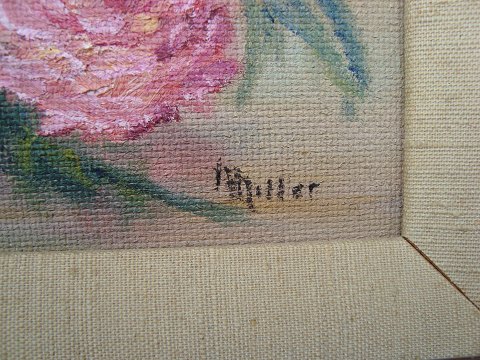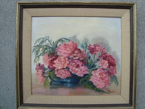 Maleri af Margery Miller, England - "Lyserøde nelliker".
