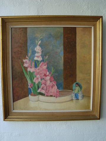 Maleri af ubekendt kunstner - Japansk dekoration med gladiolus.