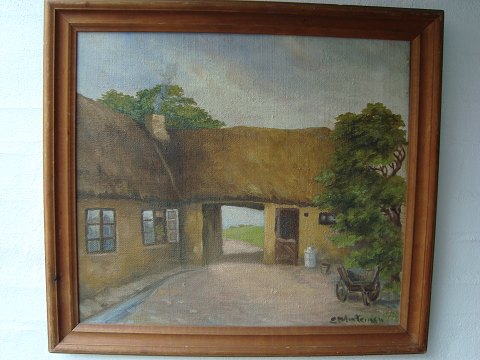 Maleri "Gårdeksteriør" sign.: E. Mortensen.