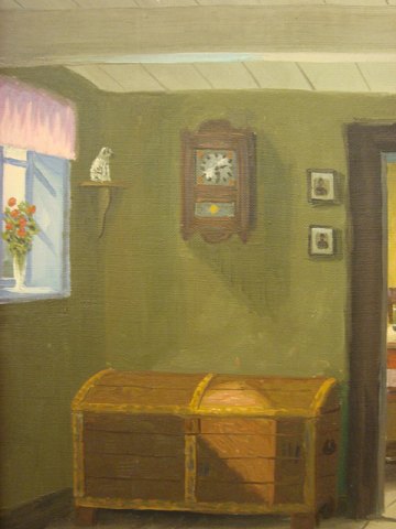Maleri af Frederik Drews - "Interiør" - signeret med pseudonymet "Poul Rönne"