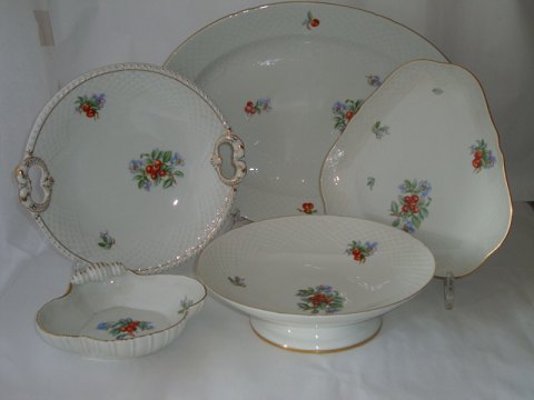 Ægir, Bing & Grøndahl, hvidt porcelæn med blomster og guldkant.