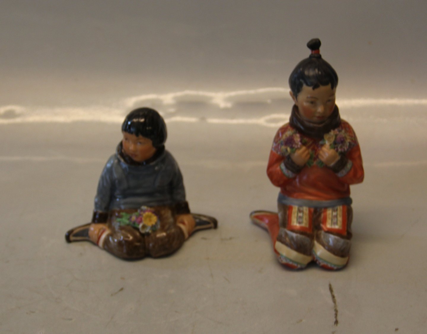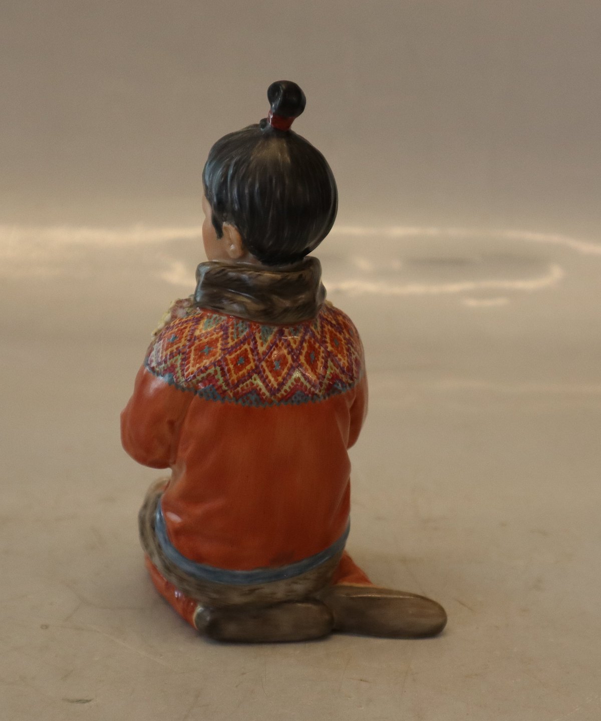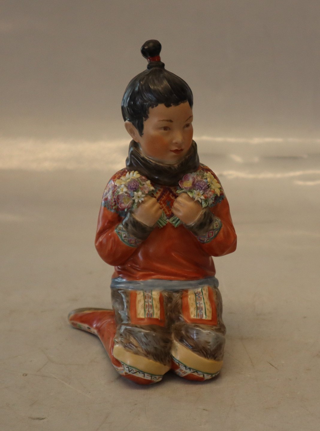 Kgl. egnsfigur fra Royal Copenhagen 12415 Grønlandsk pige i nationaldragt - Inuit pige fra Grønland med blomster og perlebroderi -