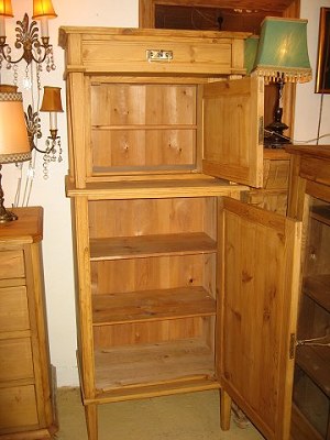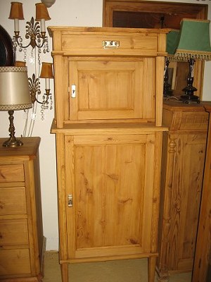 Søgleskab / Stueskab afsyret fyrretræ med 2 låger 1 skuffe mål, B 68, H 164, D 44,cm. 5899/5901-P Kan males efter eget ønske.