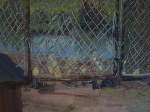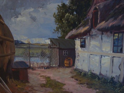 Maleri af Gustav P. Rimmer - Gårdeksteriør med hønsegård.