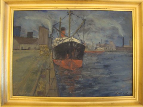 Havneparti med skibe.