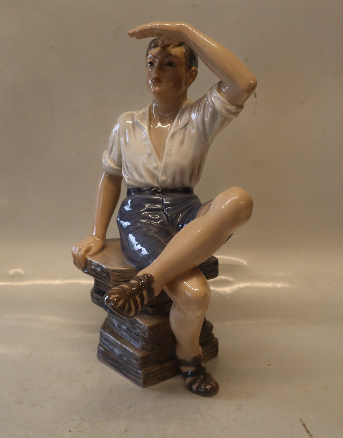 Dahl Jensen 1216 "Morgensol" ung mand (DJ) 29,5 cm. Mærket med kongelig krone og DJ Copenhagen i hel og fin stand.