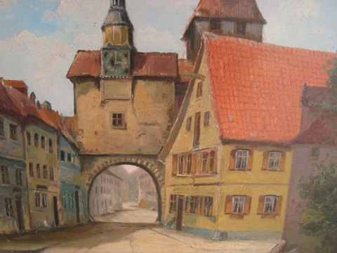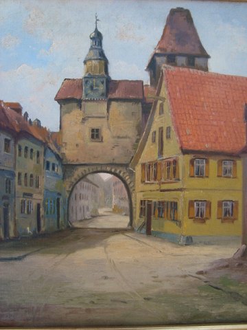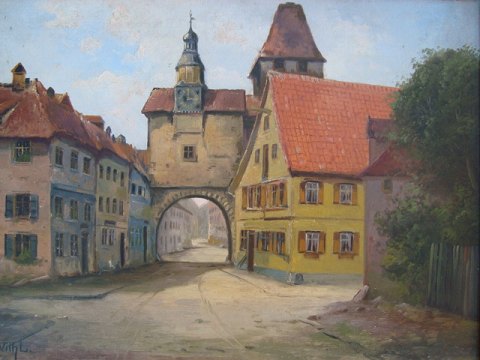 Maleri af Carl Vilhelm Larsen - Klokketårnet i Rothenburg.