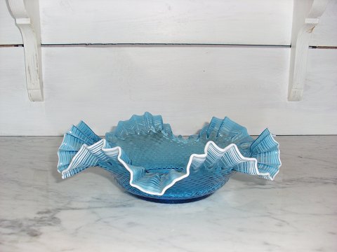 Visitkortskål. Fyens Glasværk. Ca. år. 1900. Lyseblå med hvid stribet kant.