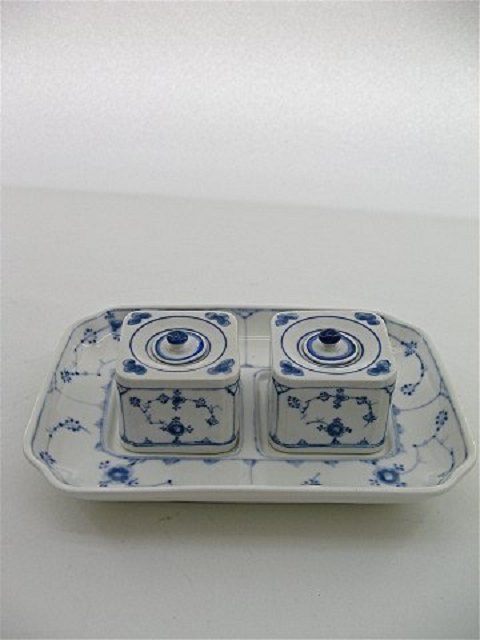 1800-tals musselmalet B&G blækhus lille rep. på låg.