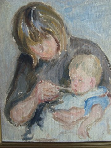 Maleri af Hans Eriksen - Mor med barn - 1969.