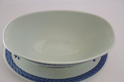 Text available in Danish: Aluminia, Tranquebar lyseblå fajance med mørkeblå tulipan og flettet bort designet af Christian Joachim. Produceret fra 1914 til 1969, hvor det overgik til Royal Copenhagen. Håndmalet. Flot stand.