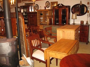 Stor salgsudstilling med restaurerede møbler håndpolerede mahognimøbler, afsyrede fyrretræsmøbler, malede træmøbler, kun originale gamle og antikke møbler.