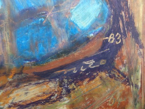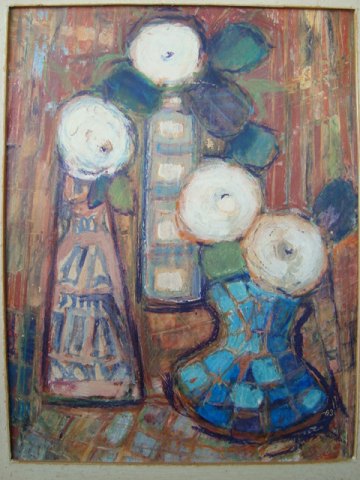 Bagpå betegnet - Opstilling med (blå vase)vaser samt label med "privat" og udstillingsnummer "14".