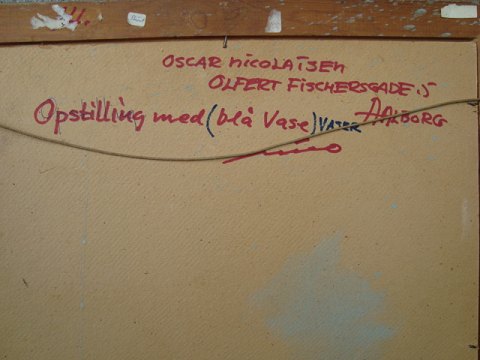 Bagpå også signeret "Nico" og tekst - Oscar Nicolaisen, Olfert Fischersgade 5, Aalborg.