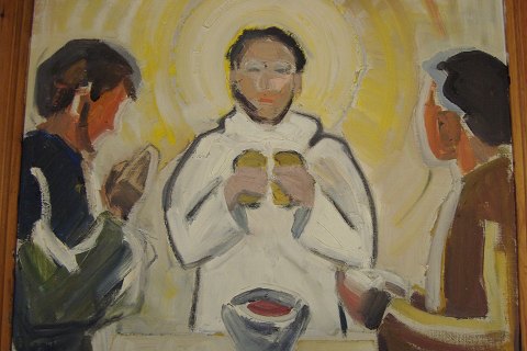 Maleri af Poul Exner 1967 - Jesus i Emmaus.