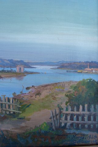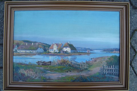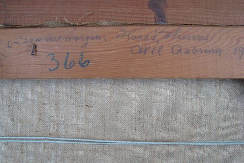 Bagpå blindramme betegnet - Sommermorgen Horsø, Husene 1924.