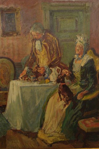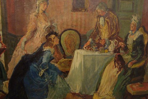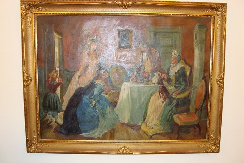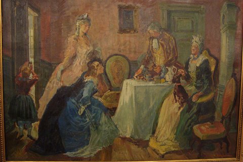 Jacobsen har lavet mange malerier med Scener fra forskellige af Ludvig Holbergs (1684-1754) værker.