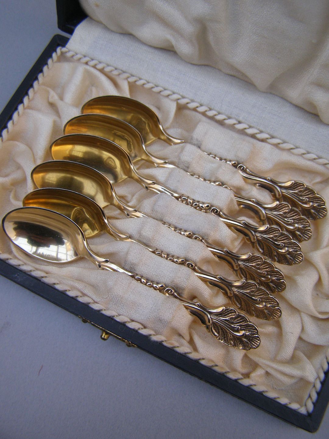 Moccaskeer i forgyldt sølv 6 stk. L:9cm.