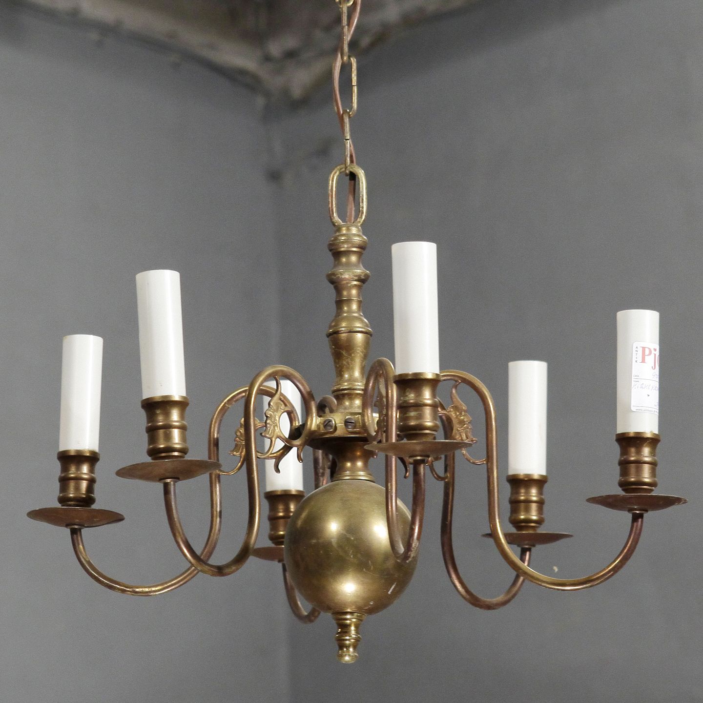 6-armet kirkekrone i bruneret messing, 47 cm i diameter, 1930-1940