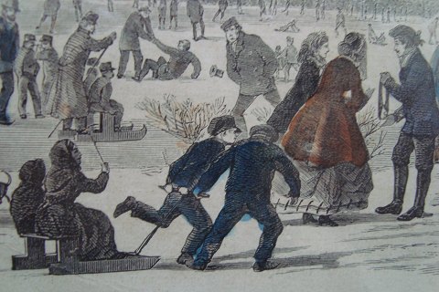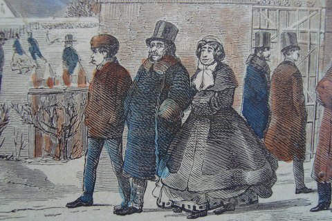 Tekst - Vinterbillede fra langeline - Tegnet af B. Olsen.