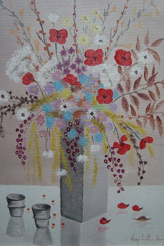 Maleri af Hugo Møller Knudsen - Opstilling med blomster i vase.