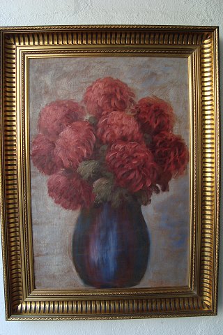 Maleri af Emiel Hansen - Krysantemer i vase.