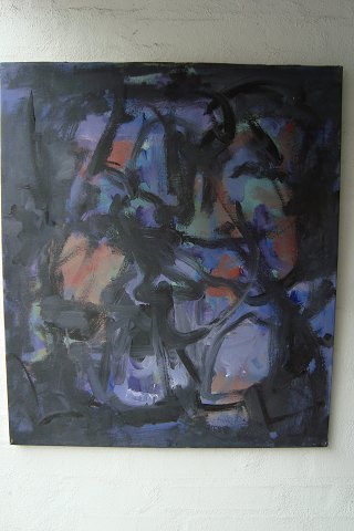 Maleri - kompostion i lilla og sort.