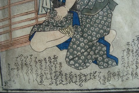 Japansk koloreret træsnit - Erotisk scene med ældre mand.