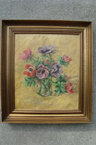 Maleri af Ida Segelcke - Franske anemoner i vase - Skagen 1945.