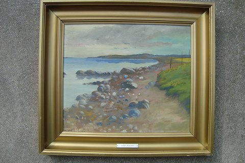 Maleri af Johan Stender - Kystparti med stenet strand.