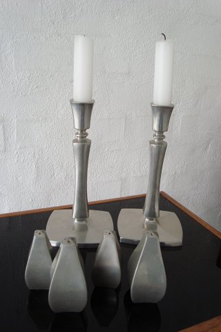 Just Andersen Tin stager og Just Andersen salt- og peberbøsser i tin.