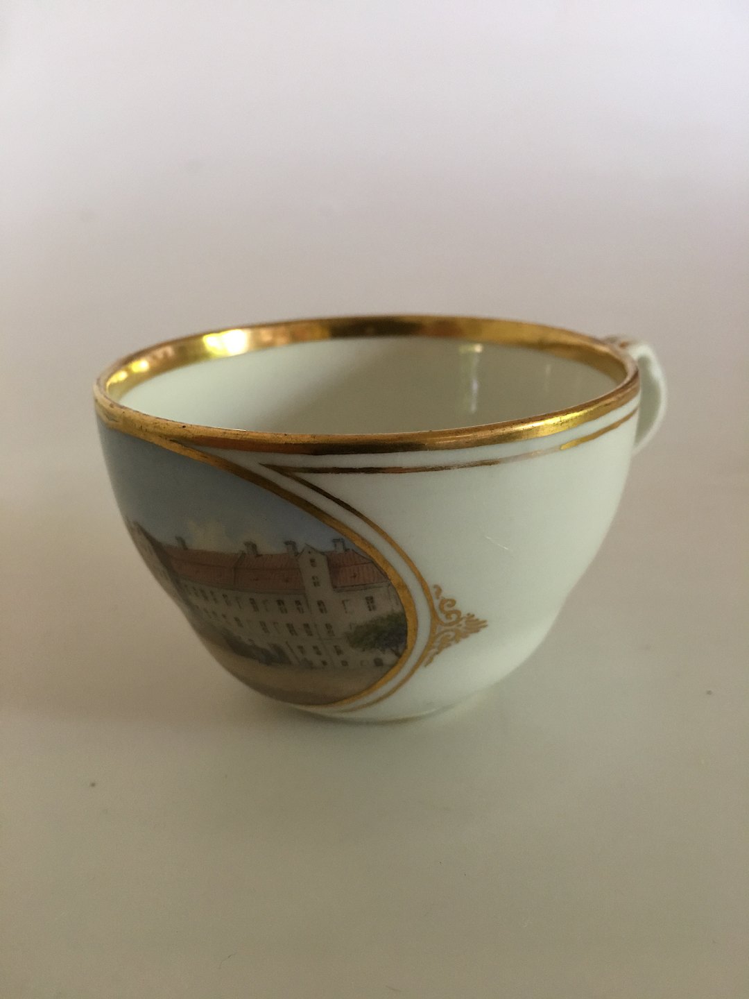 Royal Copenhagen Early Cup from 1860s with motif of a building