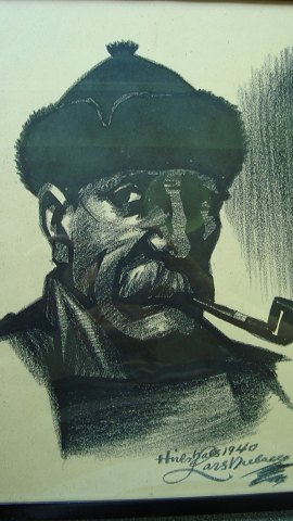 Kultegning af Lars Nielsen 1940 - Fisker med pibe og pelshue, Hirtshals.