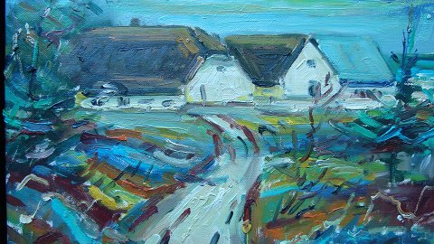 Maleri af Svend O. Kramer - Landskab med gård.